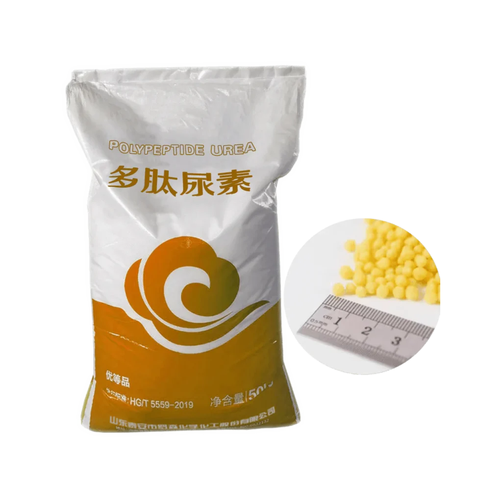 Polypeptide urea is a fertilizer that combines the nitrogen-rich properties of urea with the beneficial effects of polypeptides